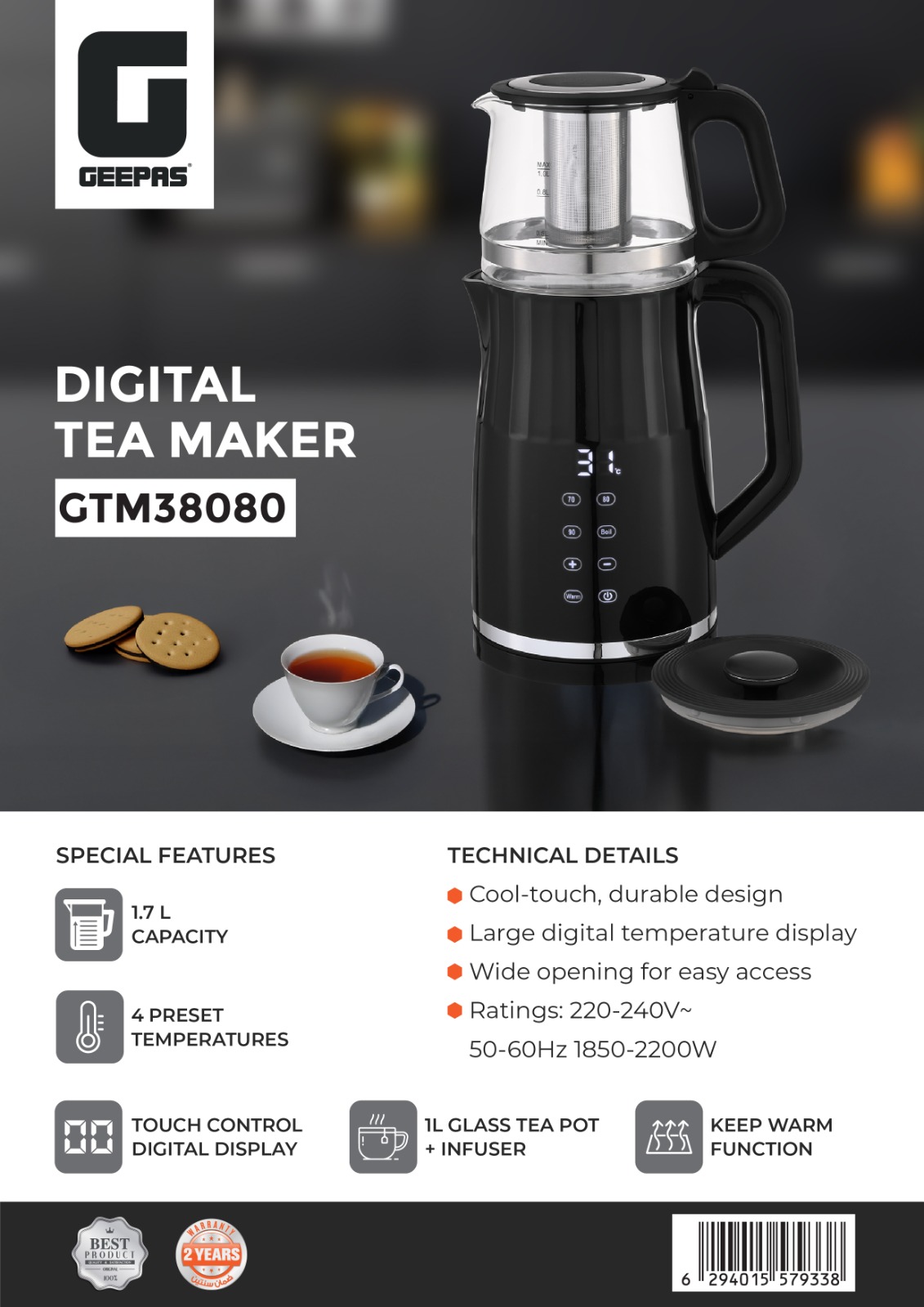 کتری برقی شیشه ای جیپاس مدل۹۹۰۱
