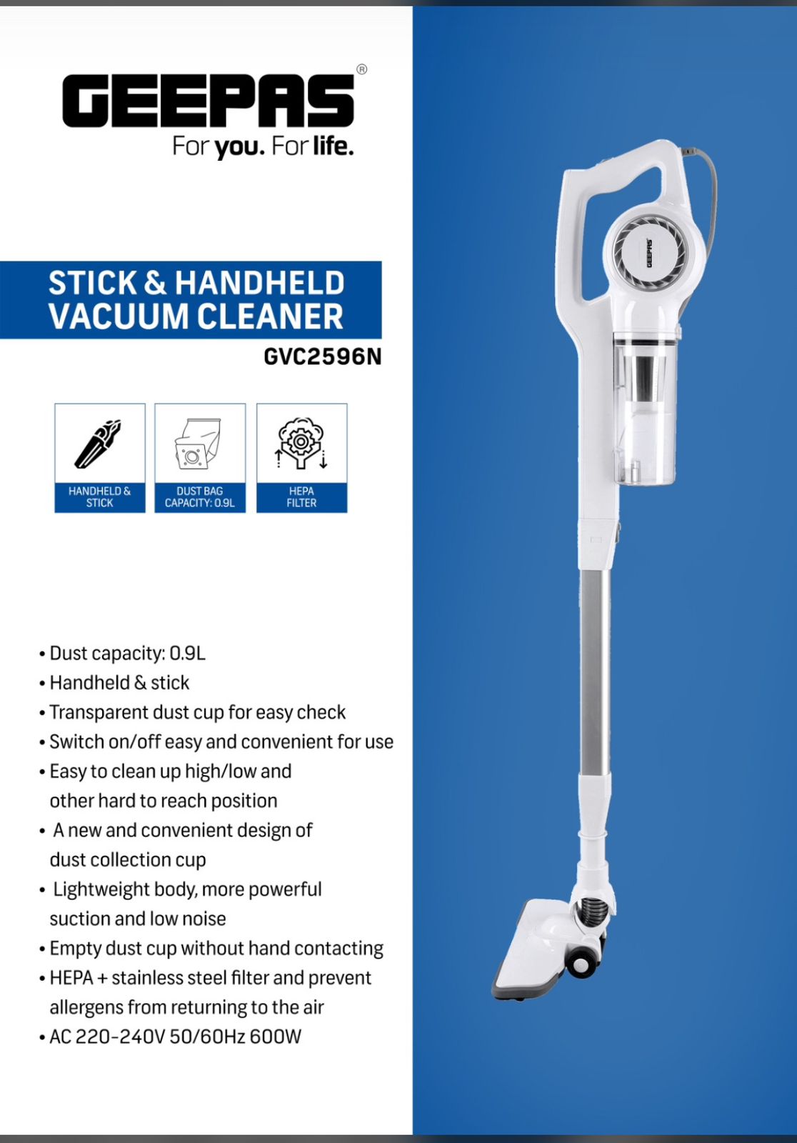 جارو برقی جیپاس مدل GVC19054 با قدرت مکش ۲۲۰۰ وات